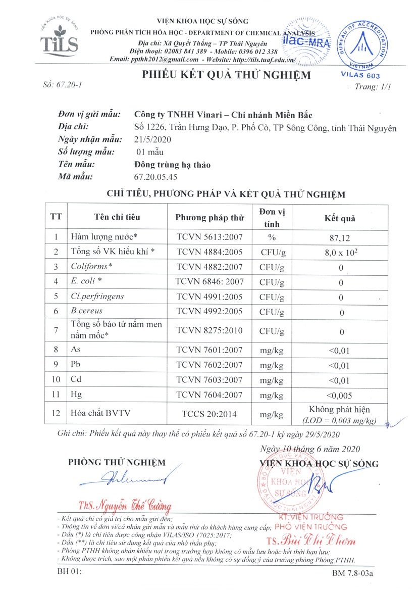 25/11/2020Đông Trùng hạ thảo của Vinari rất chất lượng , giá thành hợp lý , rất hài lòng .