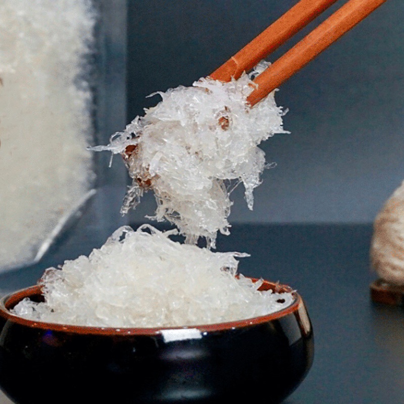 Tổ yến rút lông cũng gần như giữ được hình sáng tổ yến thô nguyên vẹn sau quá trình rút lông, loại bỏ tạp chất.