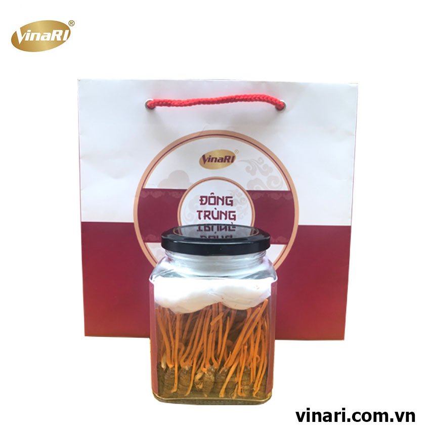 Ngâm rượu: Ngâm khoảng khoảng 60 đến 70 gram Đông trùng Hạ thảo tươi trong 1 lít rượu. Sau 1 tháng là sử dụng được. Có thể kết hợp các dược liệu khác như nhân sâm, linh chi
