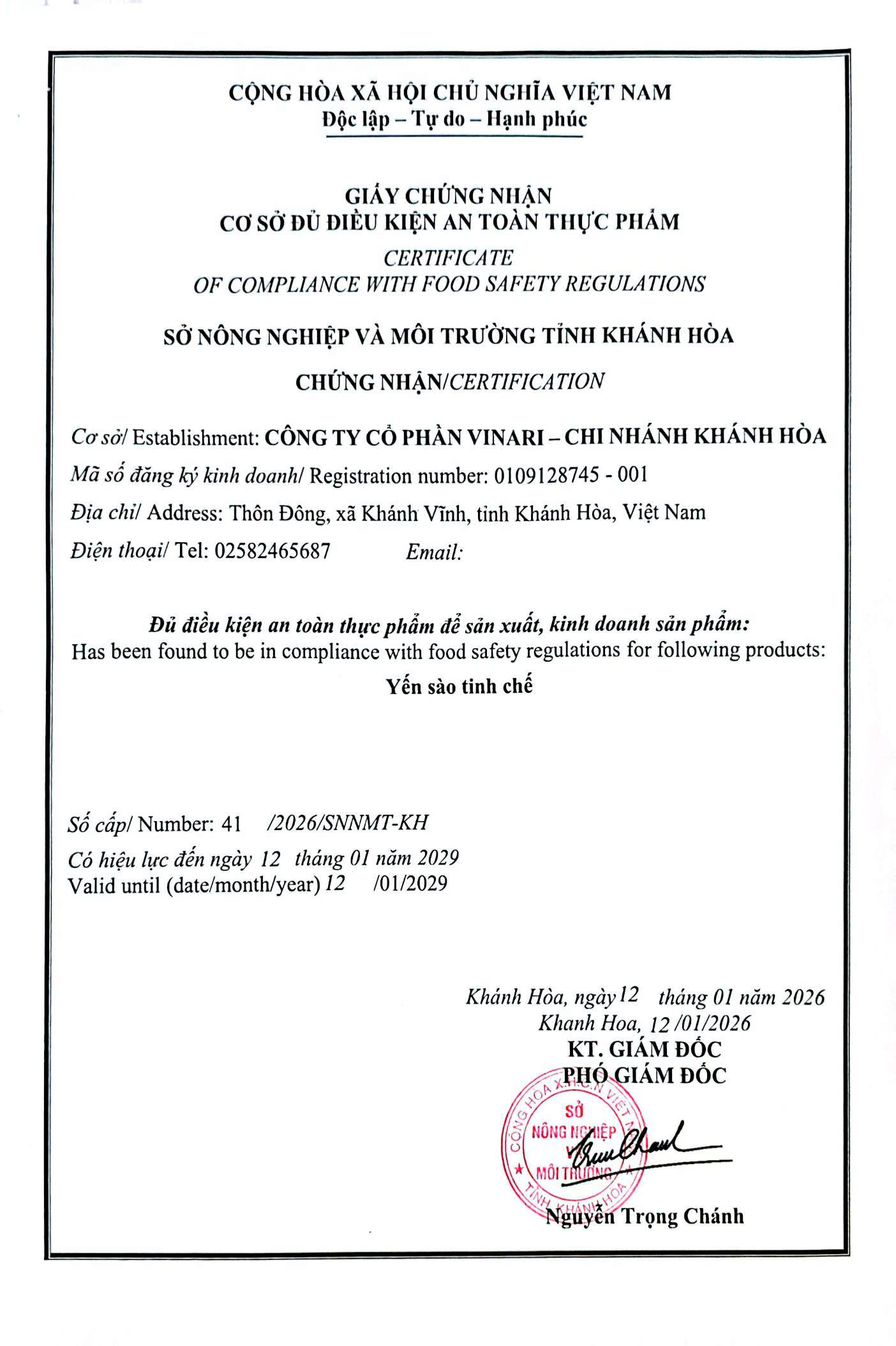 Nhà máy VinaRI - sản xuất, phân phối Tổ Yến Tiến Vua Khánh Hòa