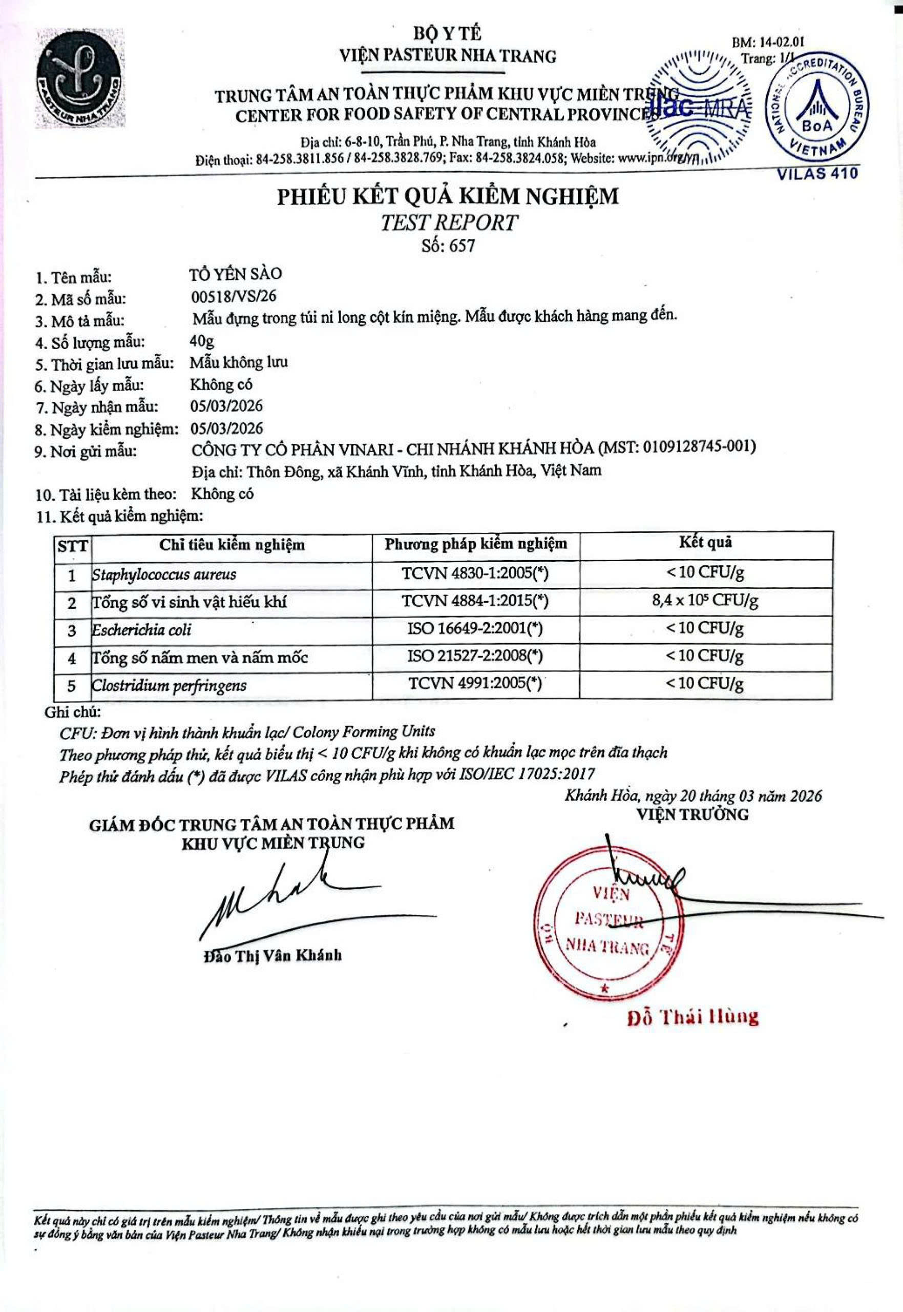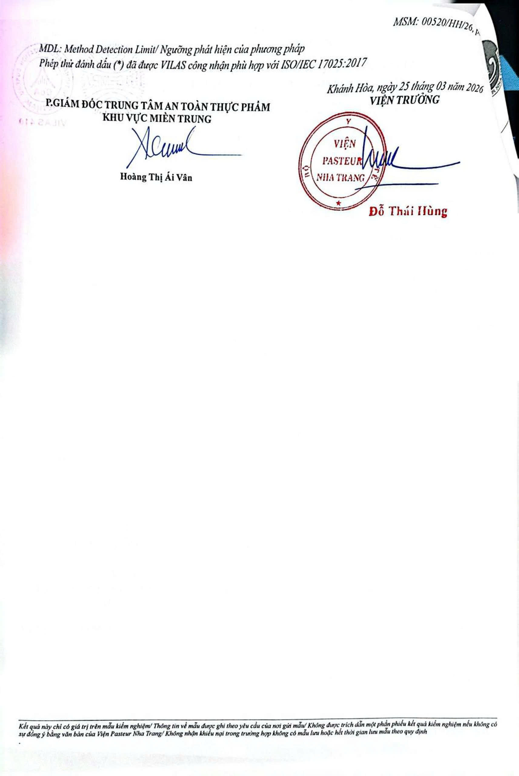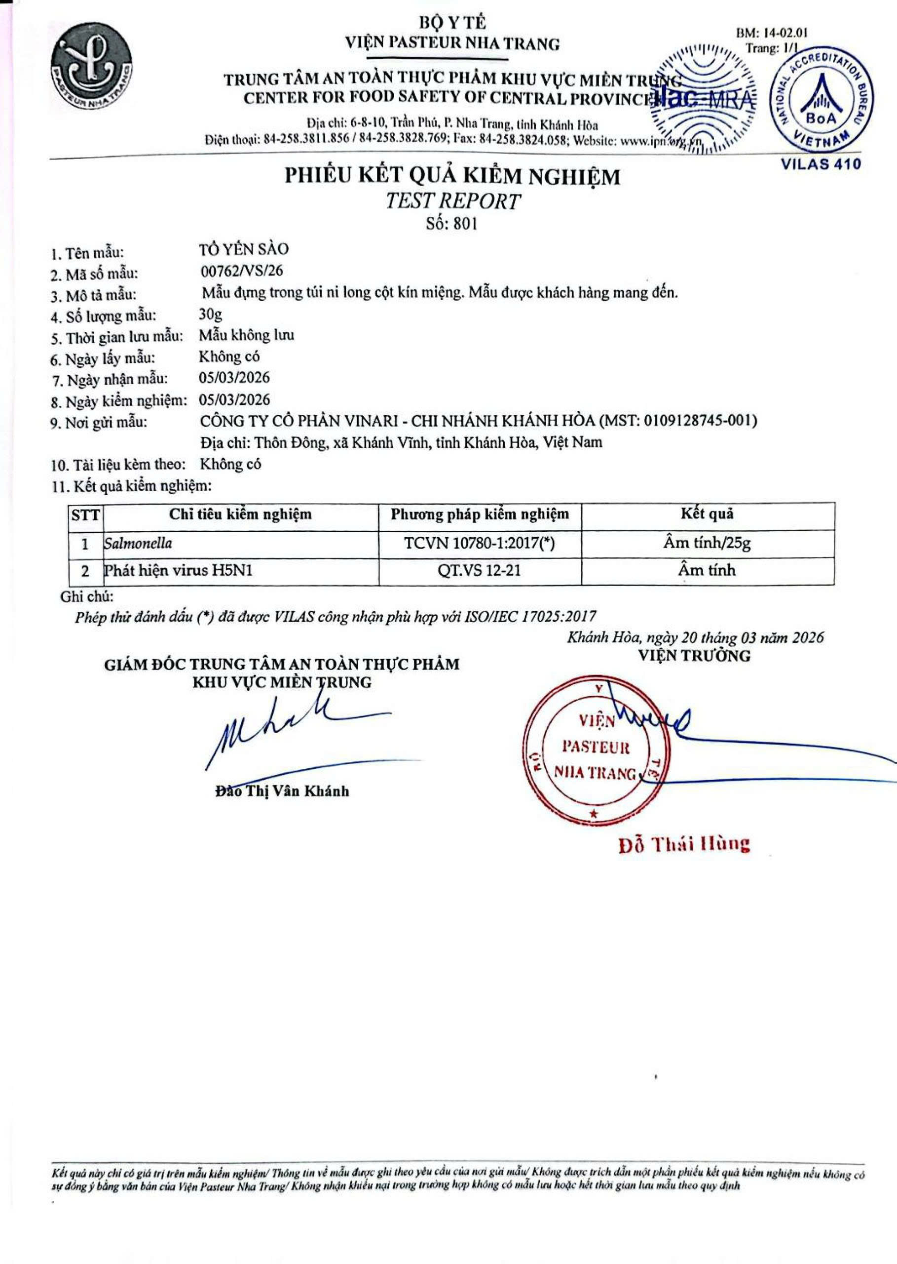 VinaRI công khai kết quả kiểm nghiệm từ Viện Pasteur Nha Trang – Bộ Y Tế
