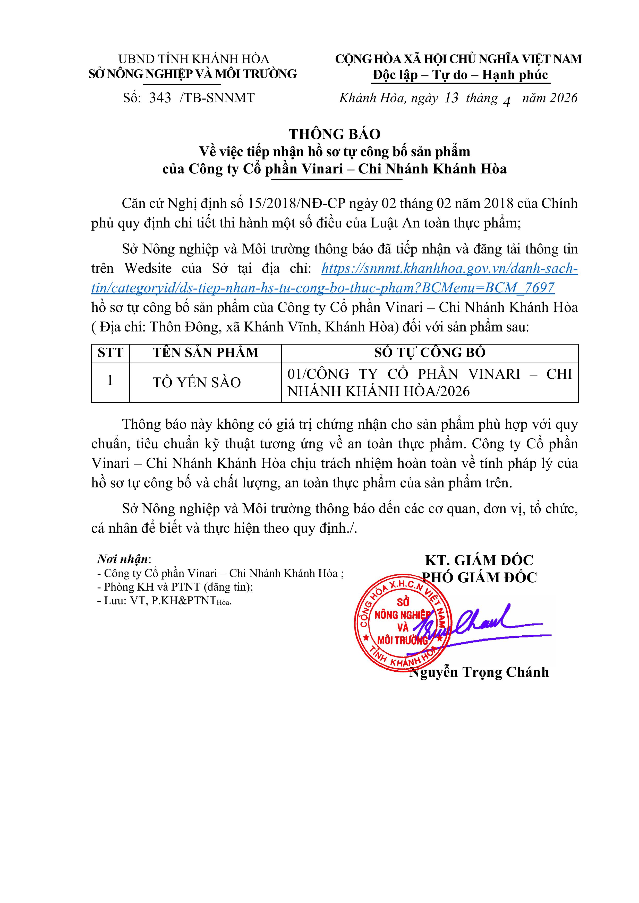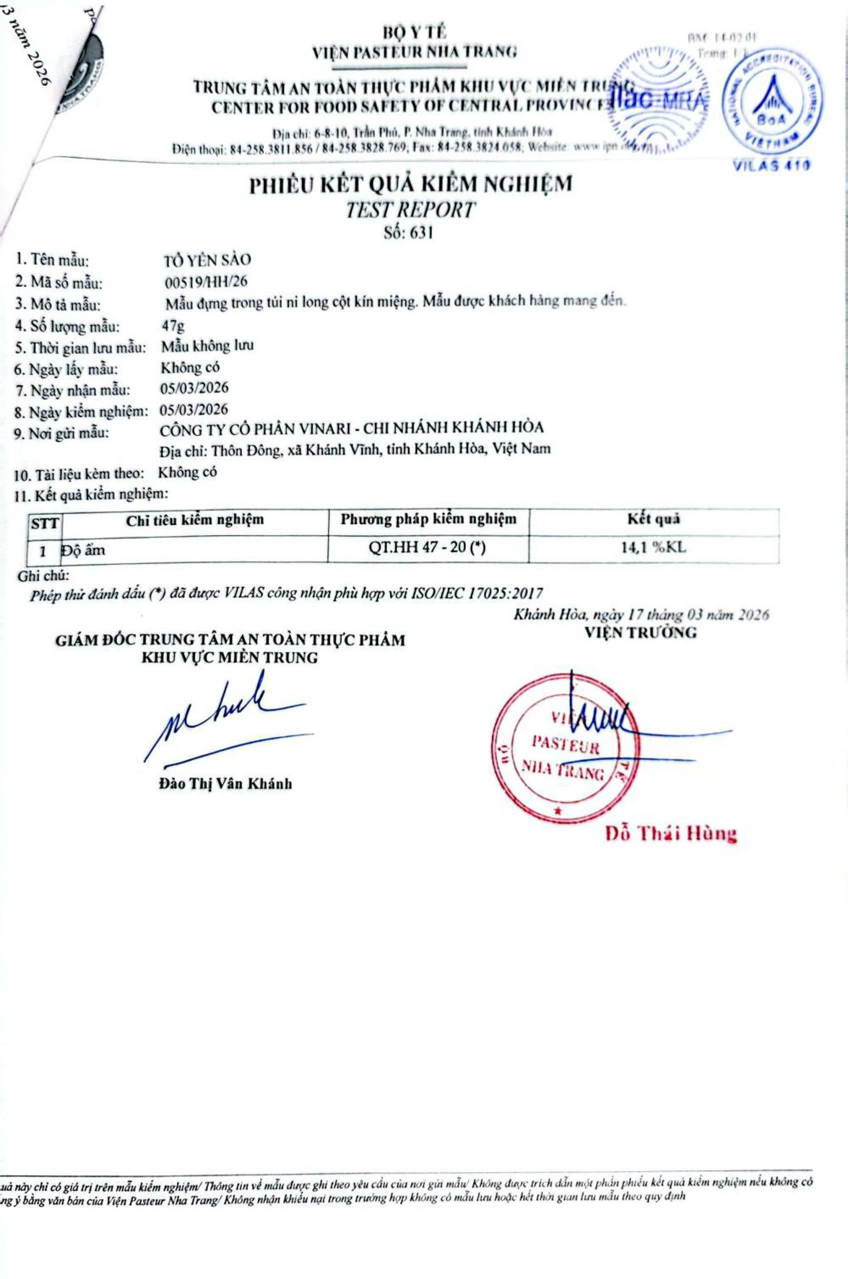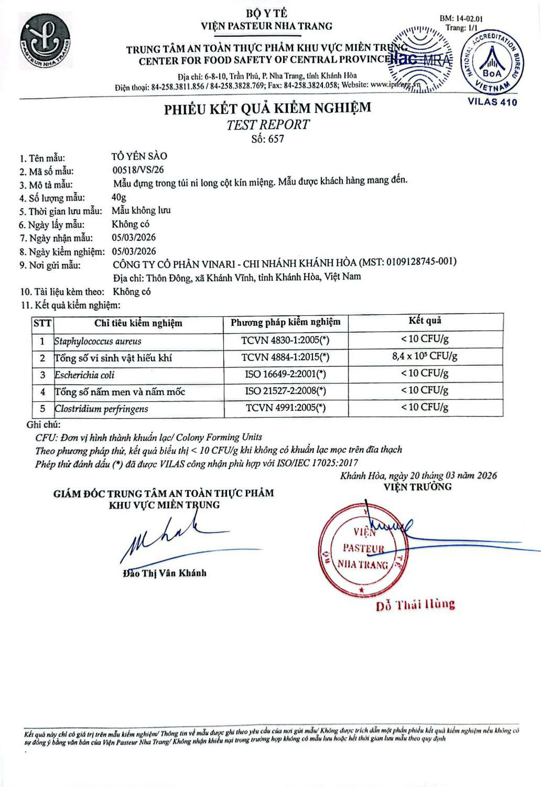 VinaRI công khai kết quả kiểm nghiệm từ Viện Pasteur Nha Trang – Bộ Y Tế
