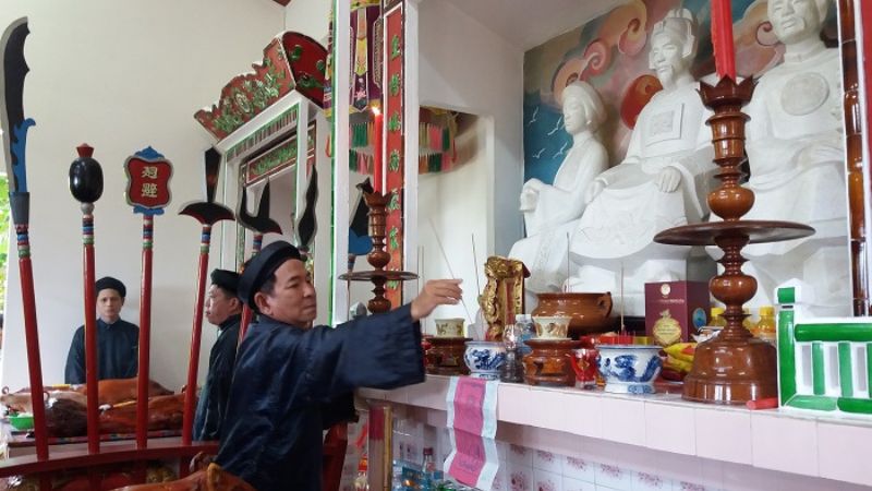 Ngay từ sáng sớm, những hậu duệ nhà họ Lê có tuổi và có tên uy tín trong làng nghề yến sào sẽ tiến hành nghi lễ dâng hương tại đảo Yến - Hòn Nội. Nghi thức dâng hương nhằm tri ân đến công đức thủy tổ, thánh mẫu và những bậc tiền nhân. Sau đó mới bắt đầu đọc lời tri ân, tổng kết những thành tích đã đạt được trong một năm qua xem như một món quà dâng lên cho đất trời và những người có công khai sinh ra nghề khai hoang tổ yến.