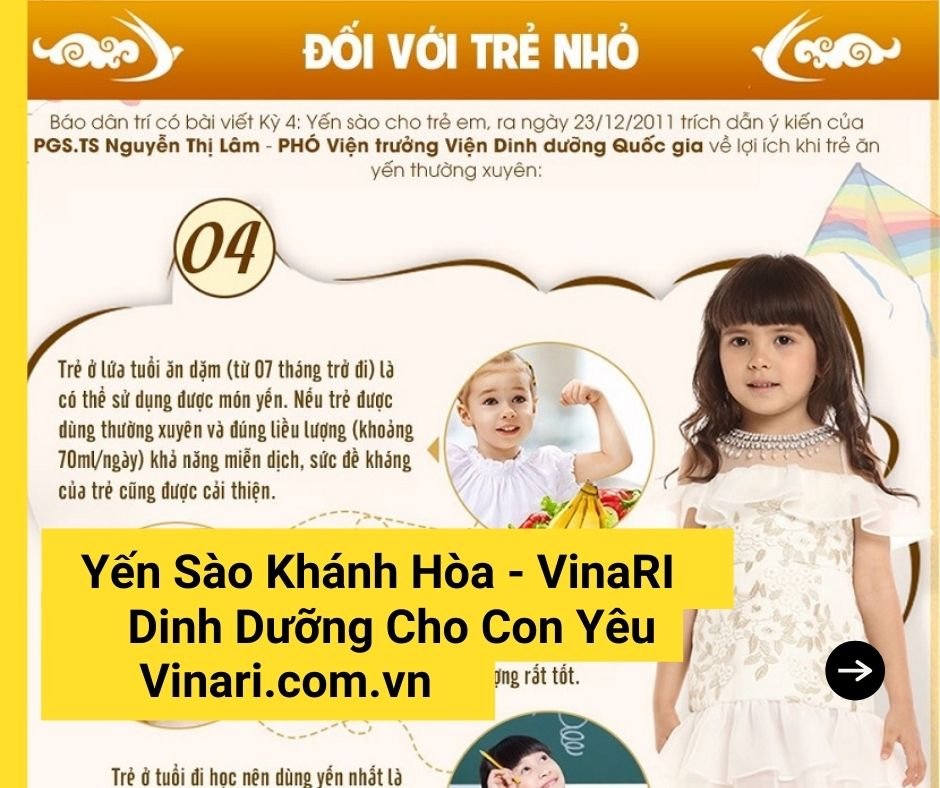 Ngoài ra, yến sào còn giúp trẻ phát triển trí não, hoạt bát và thông minh hơn. Các nguyên tố vi lượng có trong yến giúp trẻ ăn ngon miệng, mau lớn. Bạn có thể cho trẻ ăn yến hàm lượng vừa phải như sau: