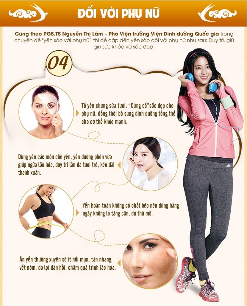 Đối với phụ nữ sau sinh, dùng yến sào giúp chị em lấy lại vóc dáng thon thả, chống rạn da. Ngoài ra, yến sào còn bổ sung đầy đủ dưỡng chất tốt nhất cho cả mẹ và bé trong thai kỳ như:
