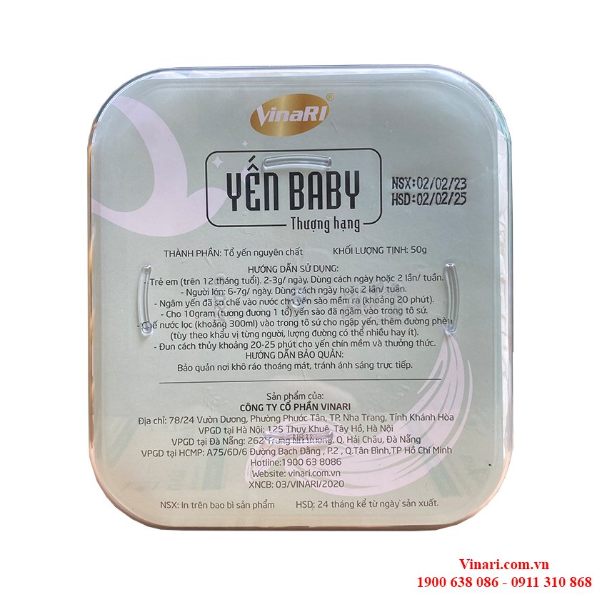 Sản phẩm yến sào baby VinaRI đạt đầy đủ tiêu chuẩn vệ sinh an toàn thực phẩm của Bộ Y Tế