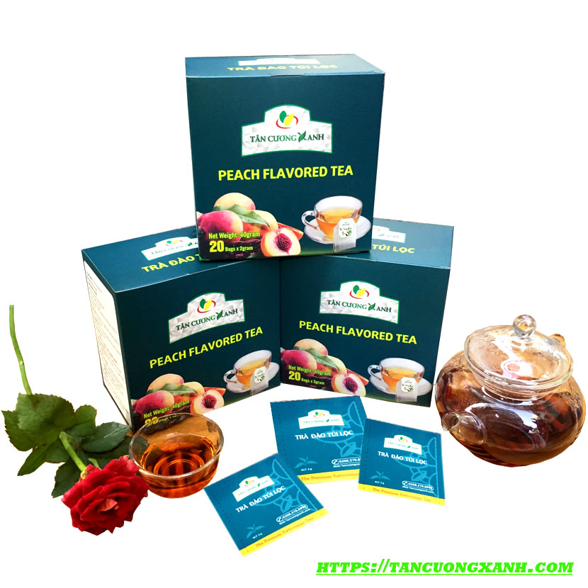 Mô tả : Trà đào túi lọc được sản xuất bằng nguyên liệu hồng trà và hương đào