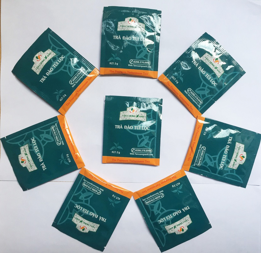 20 gói trà đào túi lọc đựng trong túi thiếc và đựng trong hộp giấy in 7 mầu cao cấp. Giấy lọc sử dụng trong sản phẩn được nhập khẩu từ hãng Yamanaka Nhật Bản
