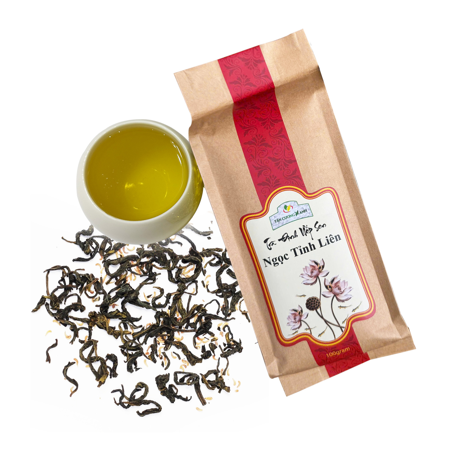 Mô tả : Trà sen tây hồ được sản xuất trên nguyên liệu là búp trà đinh và gạo sen tây hồ.