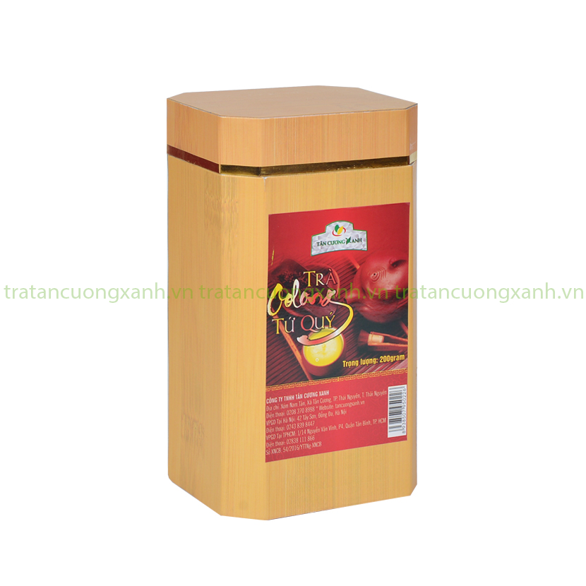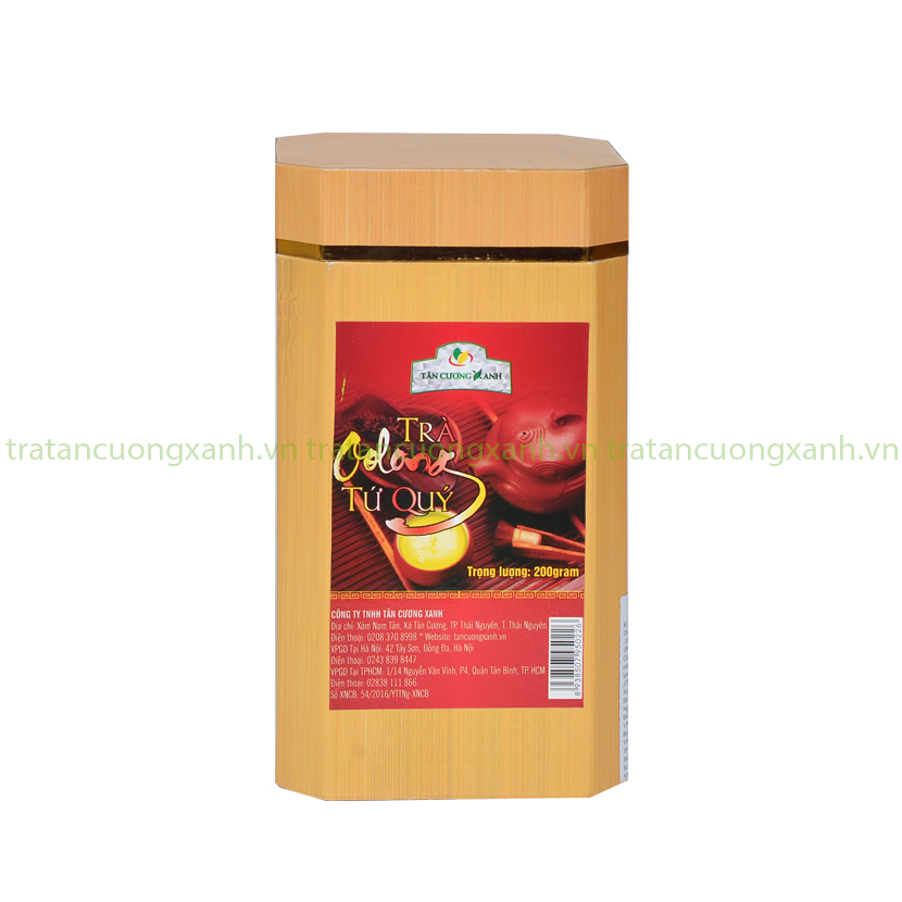 Mô tả : Trà ô long tứ quý hộp vân gỗ được làm bằng nguyên liệu là các búp trà ô long tứ quý ngon nhất của vùng trà ô long Bảo Lộc – Lâm Đồng. Tiếp đó trà được hút chân không 200gram để trà bảo quản tốt nhất và đựng trong hộp vân gỗ sang trọng
