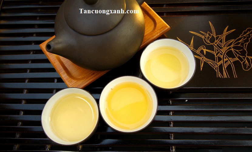 Khi pha trà shan tuyết bạch ngọc có mầu vàng sánh mật ong