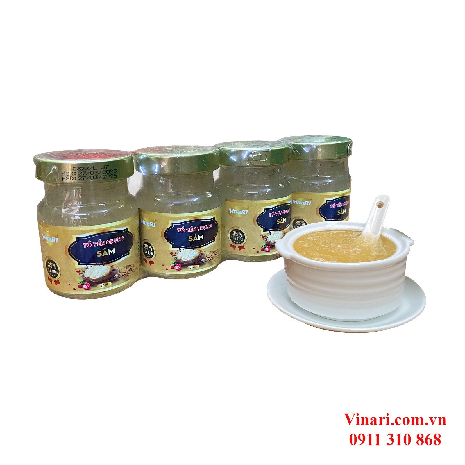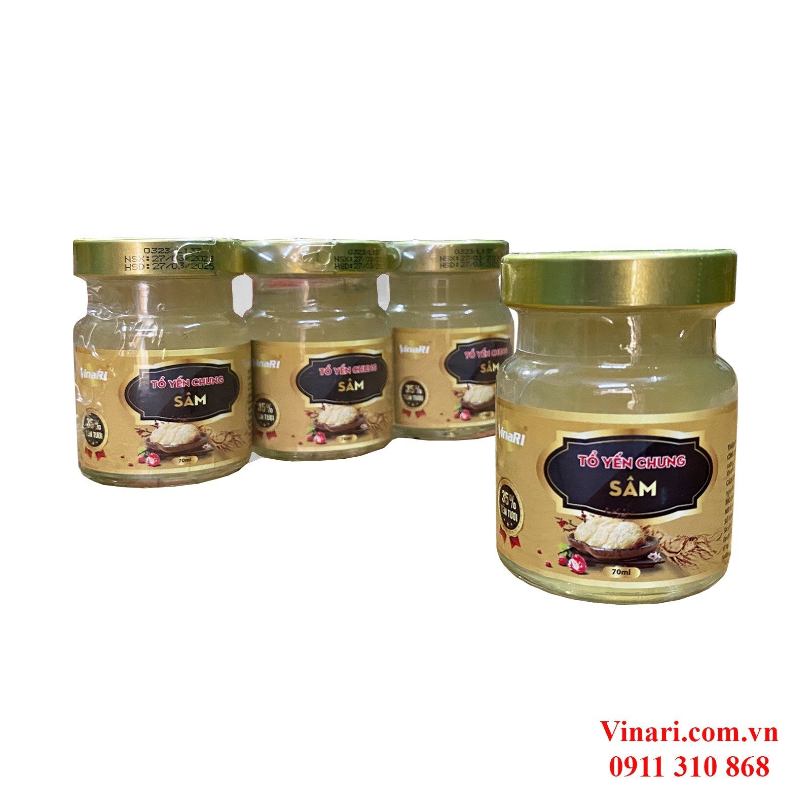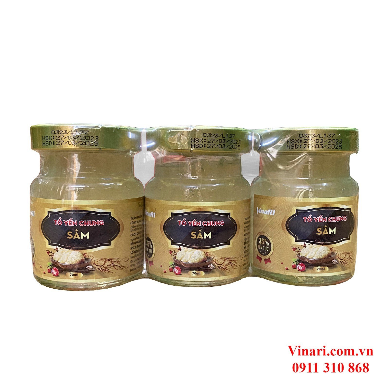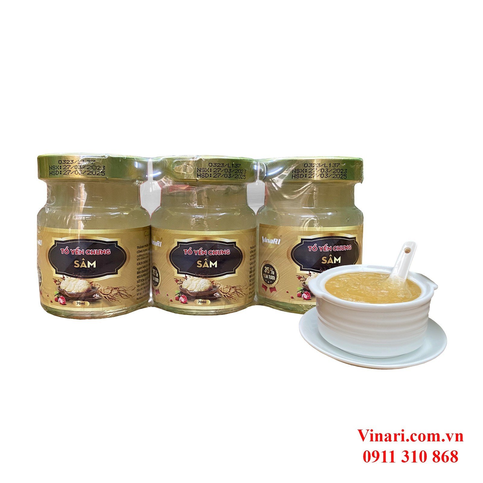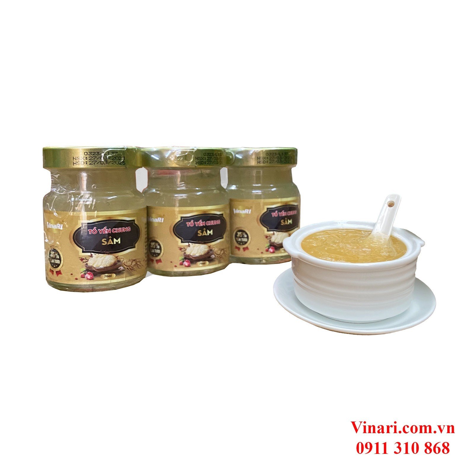 Yến SàoVinaRI Khánh Hòa Chưng Sẵn Nhân Sâm - Lốc 3 Hũ